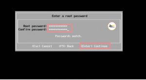 ۹: رمز عبور root را تنظیم و تأیید کنید سپس به نصب خود ادامه دهید.